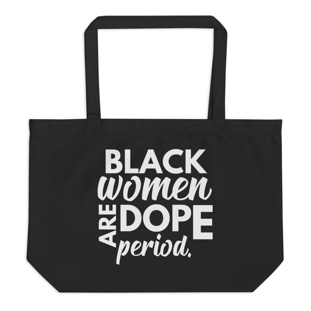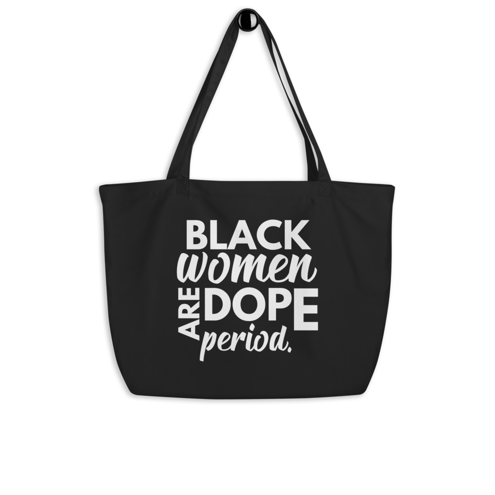 Carry your pride with the Black Girls Are Dope Tote Bag, a stylish statement piece that celebrates the brilliance and power of Black women.
