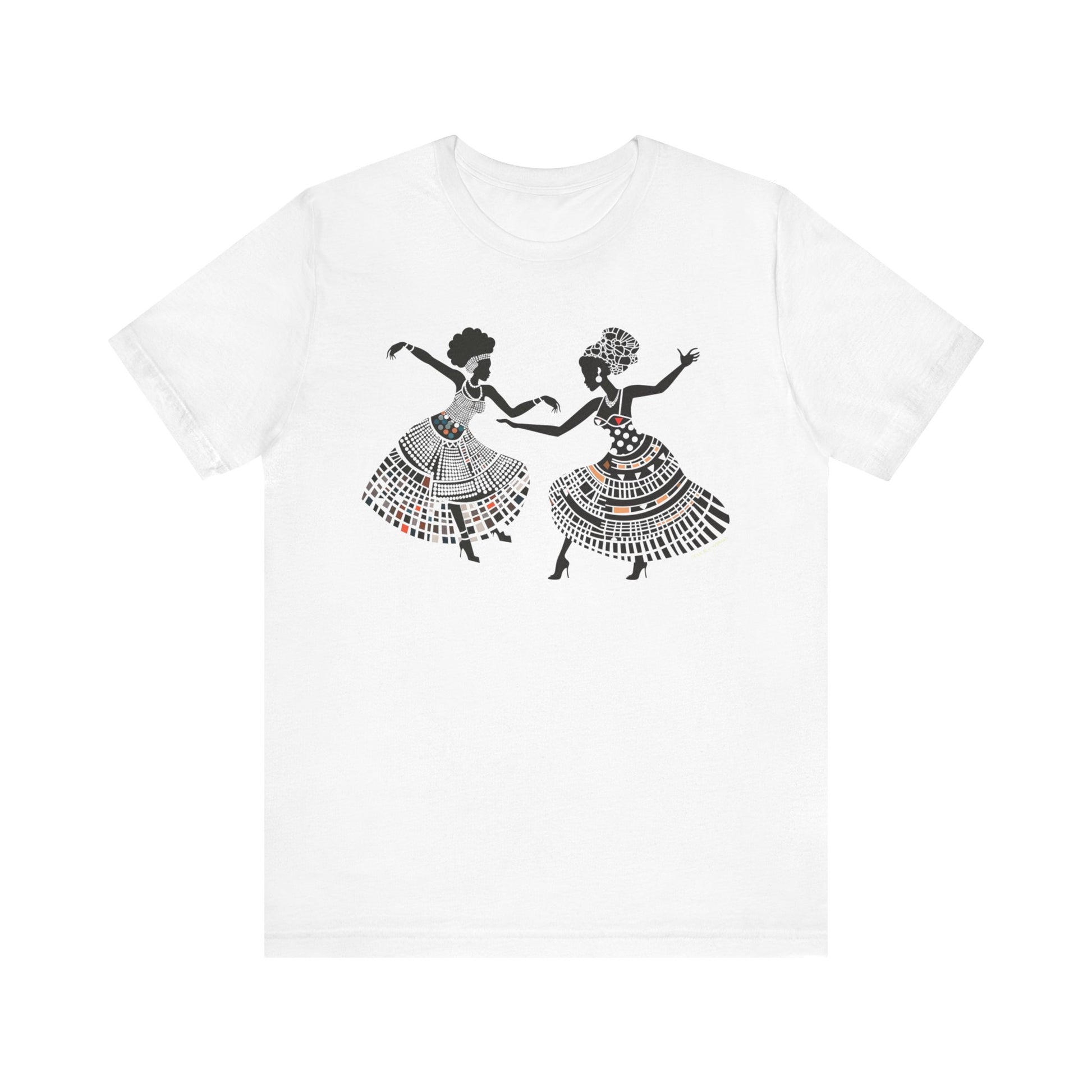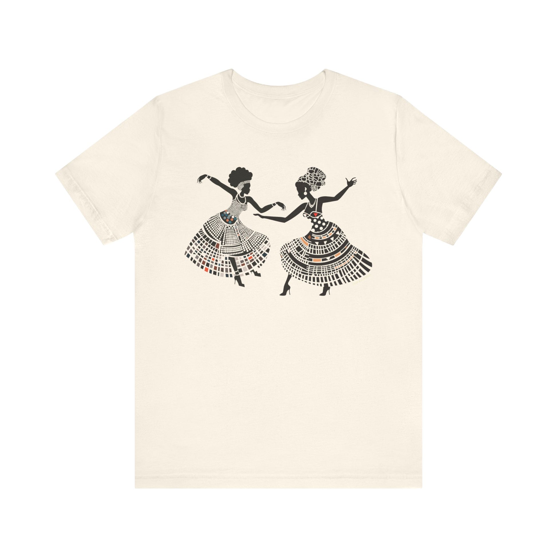 Infuse your wardrobe with joy and vitality with our Dancing Women T-Shirt. This vibrant tee captures the positive energy, excitement, and soulful spirit of Black women, making it a must-have for those who love to express themselves through fashion.